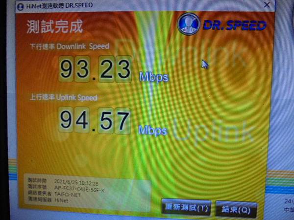 【推薦使用】ZyXEL合勤GS-108B v2桌上型Giga乙太網路交換器→公司原本使用D-Link友訊DES-1005A網路HUB交換器損壞~因使用上不穩定→現場更換新的網路集線器~正在測試上行速率→臺北市莒光路-劉小姐【下行速率93.23Mbps上行速率94.57Mbps】