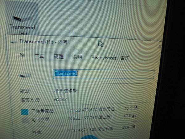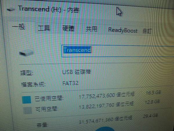 【撞歪接頭】Transcend創見700~32GB隨身碟USB 3.0插在電子白板使用→不慎撞歪USB接頭~自己再扳回USB 3.0接頭仍舊無法讀取→修復隨身碟後全數檔案資料完整~Transcend(H:)內容→臺北市文林路-陳先生【已使用空間16.5GB可用空間12.8GB】