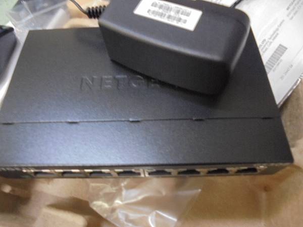 【散熱性佳】NETGEAR美國網件GS308桌上型Giga高速交換式集線器~公司原本使用ZyXEL合勤GS-108S網路HUB集線器→使用多年老舊~要汰換Giga網路交換器提升網速→由塑膠袋中取出NETGEAR高速交換式GS308集線器~臺北市莒光路-劉小姐【取變壓器】