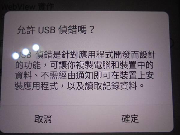 【留機處理】SHARP夏普AQUOS S2→128GB智慧型手機FS8016~感覺這隻工作專用機使用時很不順→不慎將手機恢復原廠設定~想救回手機儲存的相片影片和客戶資料→允許USB偵錯嗎?是針對應用程式開發而設計的功能~新北市土城區-陳先生【點確定】