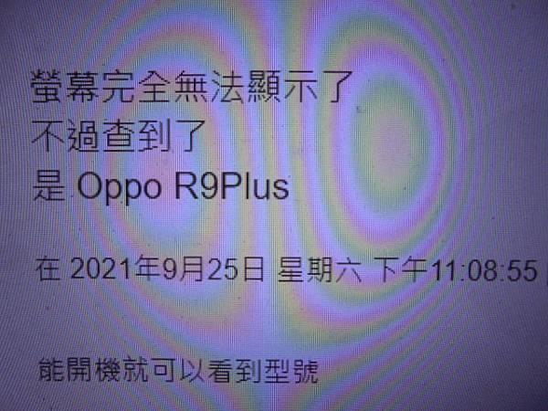 【約定送測】OPPO歐珀R9 Plus~X9079智慧型手機64GB是向朋友借來使用→不小心手滑後掉落地面導致螢幕破裂~螢幕完全沒有畫面→要更換手機新螢幕並歸還朋友~Yahoo信箱Re:修OPPO手機螢幕→新北市新店區-陳先生【回覆能開機就可以看到型號】