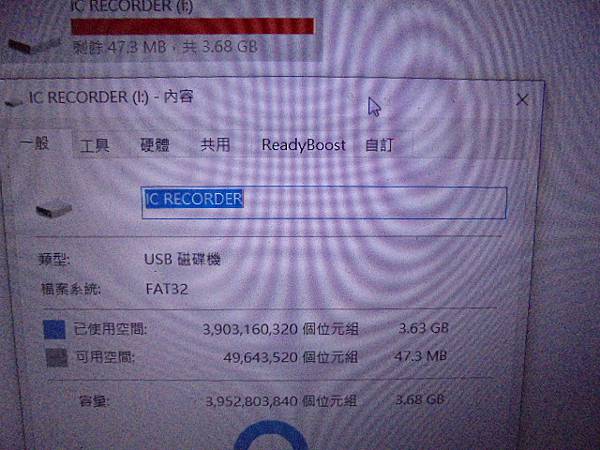 【下班送測】SONY索尼ICD-UX543F→4GB錄音筆使用多年~錄音筆忽然無法充電無法傳輸檔案→想修好錄音筆問題繼續做課程錄音~要改為Micro USB接座充電和傳輸→ICD-UX543F正確讀取IC RECORDER(I:)~桃園市龜山區-黃小姐【剩餘47.3MB共3.68GB】
