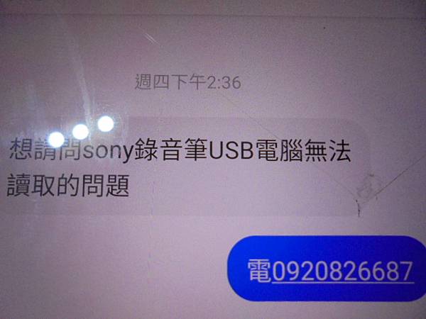 【LINE詢問】SONY索尼ICD-UX523F→4GB錄音筆摔落地面後~連接電腦無法傳輸檔案→外接記憶卡出現ERROR無法讀取~要修好USB無法傳輸問題或救出內存的錄音檔案→經客戶確認SONY索尼ICD-UX523F錄音筆~臺北市石牌路-辜小姐【可錄音可播放功能】