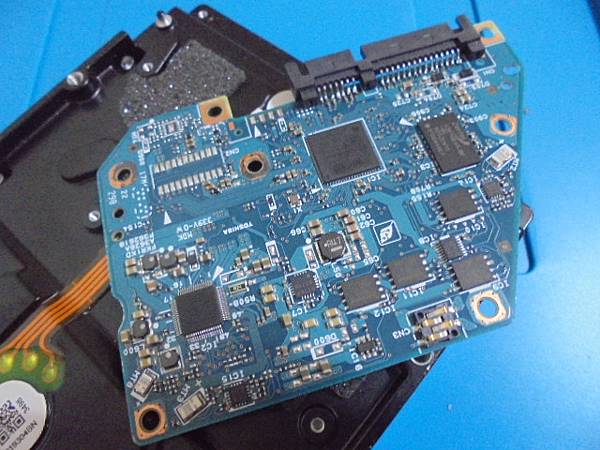 【磨開機構】TOSHIBA東芝4TB→3.5吋裸碟在插拔ASUS主機板時~折斷SATA電源接口15Pin塑膠片導致無法使用→到光華商場找卻無人可維修~要更換SATA接座繼續使用→翻開TOSHIBA東芝3.5吋4TB裸碟電路板~臺北市北投區-王先生【準備做後續的處理】
