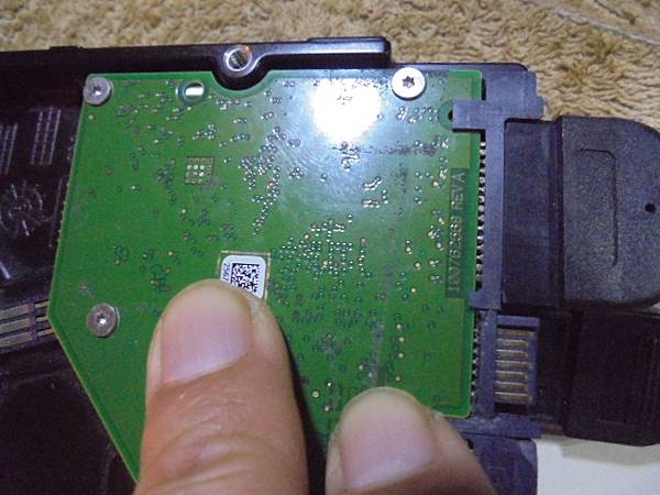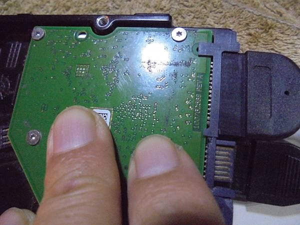【單改7Pin】Seagate希捷2TB硬碟3.5吋~安裝插拔時將SATA訊號接口7Pin塑膠片折斷→無法存取使用硬碟~找好久才找到這邊可維修→要修好SATA接座再使用裸碟~左手三隻指頭觸摸Seagate希捷裸碟→臺北市復興北路-曾先生【確認碟片已正常轉動】 【接座折斷】Seagate希捷2TB硬碟3.5吋→安裝插拔時將SATA訊號接口7Pin塑膠片折斷~導致HDD無法存取使用→已損壞一年多無法處理~要修好SATA接座再使用裸碟→把Seagate希捷裸碟背面平放於桌面毛巾上~臺北市復興北路-曾先生【取SATA電源線】