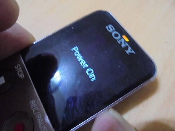 【排線斷裂】SONY索尼ICD-UX543F→4GB錄音筆使用多年~錄音筆忽然無法充電無法傳輸檔案→內建記憶體有錄音檔案必需要救出~已改為Micro USB接座充電和傳輸→滑動SONY索尼ICD-UX543F錄音筆POWER鍵~高雄市鳳山區-盧小姐【螢幕顯示Power On】