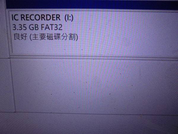 【寄郵省道】SONY索尼ICD-UX570F→4GB錄音筆先前使用均為正確~近日壓控制按鈕均無反應→錄音筆面板功能鍵都不能操控使用~要修好錄音筆控制按鈕失效問題→磁碟2抽取式3.35GB連線~高雄市三民區-陳先生【IC RECORDER(I:)良好主要磁碟分割】