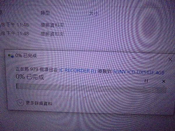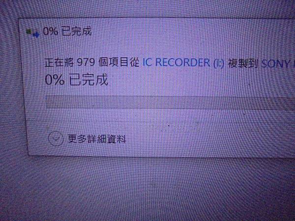 【帶碟裝回】SONY索尼4GB~ICD-UX543F錄音筆連接電腦讀不到裝置→無法傳輸檔案無法充電~錄音筆當隨身碟存重要檔案→要救回錄音筆內建記憶體的重要檔案資料~正在將979個項目複製到SONY ICD-UX543F 4GB→新北市永和區-錢先生【6%已完成】