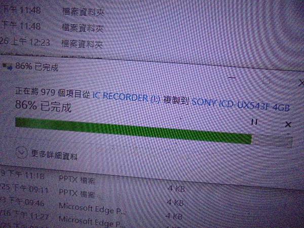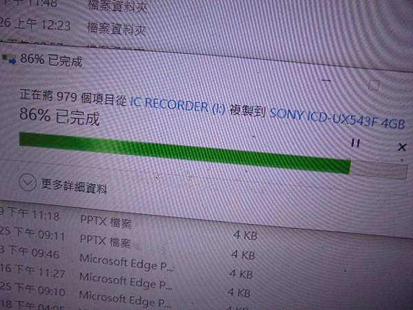 【快速救出】SONY索尼ICD-UX543F→4GB錄音筆連接電腦讀不到裝置~無法傳輸檔案無法充電→SONY原廠已不維修這個型號~已救出錄音筆內建記憶體的重要檔案資料→正在將979個項目複製到SONY ICD-UX543F 4GB~新北市永和區-錢先生【80%已完成】