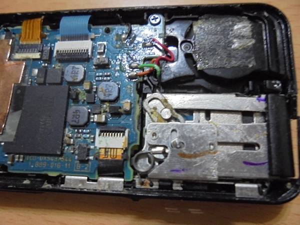 【電話詢問】SONY索尼4GB~ICD-UX543F錄音筆使用多年→某次不慎時掉進泡麵中~撿起來操作時功能已經異常→連接電腦讀不到裝置~要救出內建記憶體錄音檔案→以工具撬開SONY索尼ICD-UX543F錄音筆背蓋~臺北市成功路-潘先生【看到電路板本體】