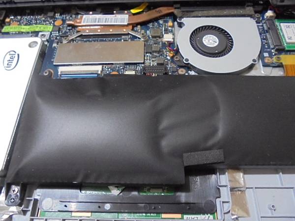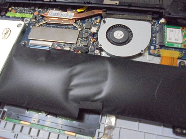 【LINE詢問】ASUS華碩Transformer Book Trio→TX201LA筆記型電腦~不知原因原廠電池自行膨脹鼓起→C殼的觸控板被頂到變形~要解決平板筆電底座隆起的問題→左側看到Intel英特爾240GB固態硬碟SSD~新北市樹林區-蔡先生【客戶先前自行更換】