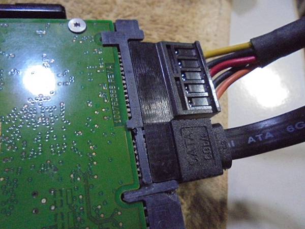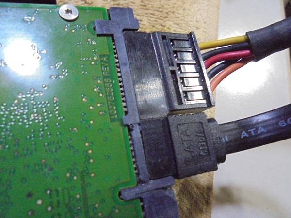 【接座折斷】Seagate希捷2TB硬碟3.5吋→安裝插拔時將SATA訊號接口7Pin塑膠片折斷~導致HDD無法存取使用→已損壞一年多無法處理~更換新SATA接座再使用裸碟→將Seagate希捷2TB裸碟翻至背面~臺北市復興北路-曾先生【套入SATA電源線訊號線】