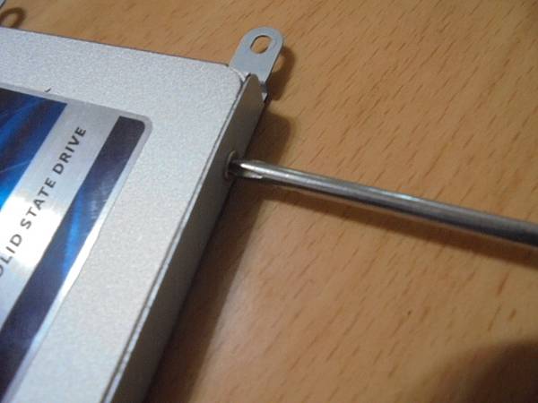 【搭高鐵來】Lenovo聯想ideaPad Z580筆記型電腦→Notebook使用約八年~9月份送來更換新鍵盤讓筆電正常使用→提醒HDD老化轉速慢影響效能改成SSD硬碟提升效能~十字起子依序鎖進→桃園市蘆竹區-溫小姐【硬碟架裏Crucial固態硬碟的四顆螺絲】