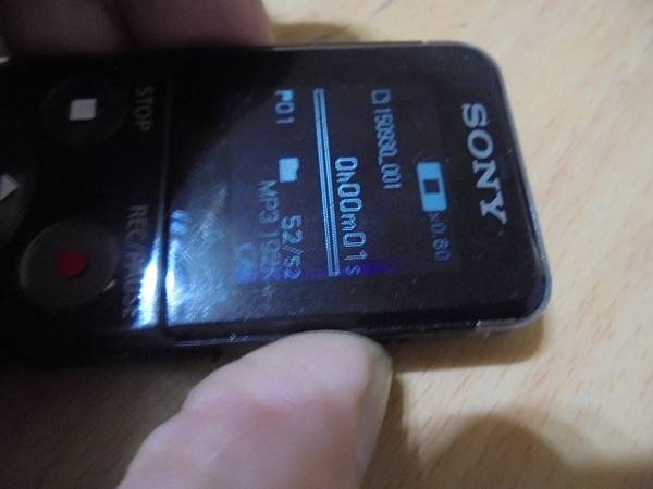 【電話詢問】SONY索尼4GB~ICD-UX543F錄音筆使用多年→某次卻不慎掉進泡麵中~撿起來操作時功能已經異常→連接電腦讀不到裝置~要救出內建記憶體錄音檔案→滑動SONY索尼ICD-UX543F錄音筆POWER鍵開機~臺北市成功路-潘先生【正確開機顯示】