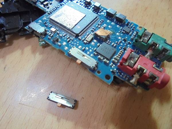 【完修寄回】SONY索尼4GB~ICD-UX523F錄音筆已使用多年→感覺POWER鍵接觸不良~常常滑動電源鍵開機都沒反應→要修好POWER滑動開關~讓錄音筆能回復正常使用→由SONY索尼ICD-UX523F錄音筆電路板→南投縣南投市-尹先生【拆下損壞POWER開關】 【更換開關】SONY索尼ICD-UX523F→4GB錄音筆已使用多年~感覺POWER鍵接觸不良→常常滑動電源鍵開機都沒反應~要修好POWER滑動開關→讓錄音筆能回復正常使用~貼膠帶保護SONY索尼ICD-UX523F錄音筆電路板→南投縣南投市-尹先生【取工具解焊】