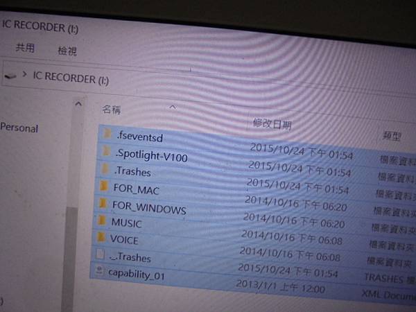 【救出音檔】SONY索尼ICD-UX543F→4GB錄音筆使用多年~某次使用時掉進泡麵中→撿起來操作時功能已經異常~連接電腦讀不到裝置→要救出內建記憶體錄音檔案~滑鼠點進本機>IC RECORDER(I:)>VOICE→臺北市成功路-潘先生【續點FOLDER01資料夾】