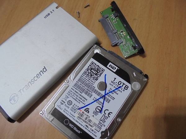 【露天拍賣】WD威騰1TB黑標BLACK→2.5吋裸碟裝在Transcend創見外接盒當外接式資料硬碟~不明原因硬碟讀不到磁區亦無法格式化→要救回硬碟裏家人的工作檔案~把Transcend創見轉接電路板→臺中市豐原區-羅先生【套進WD威騰1TB黑標2.5吋裸碟】