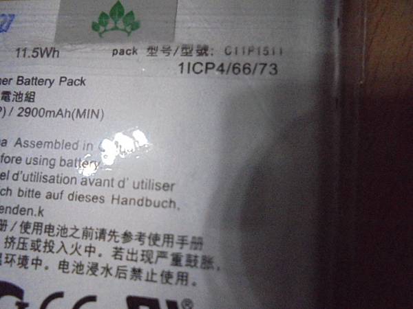 【購得電池】ASUS華碩C11P1511→Li-Polymer Battery鋰離子聚合物電池~手機蓄電力已變差→充飽電後很快就沒電~外出需準備行動電源做充電→要更換新的電池~電池印有多項安規標示C11PJ9CP619FL→新北市中和區-鄭先生【生產日期:2021/6/15】