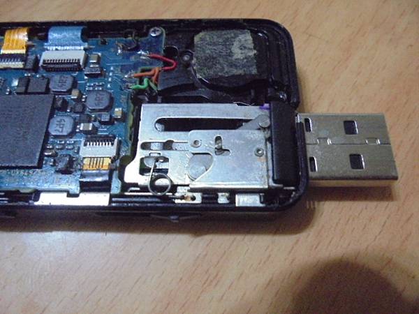 【氧化嚴重】SONY索尼ICD-UX543F→4GB錄音筆使用多年~某次使用時掉進泡麵中→撿起來操作時功能已經異常~連接電腦讀不到裝置→已救出內建記憶體錄音檔案~由USB延長線拔出錄音筆/將頂部機構→臺北市成功路-潘先生【套回ICD-UX543F錄音筆】