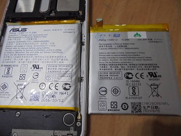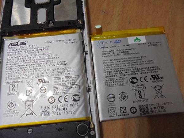 【現場更換】ASUS華碩ZenFone 3~64GB智慧型手機Z012DA→感覺使用多年的手機蓄電力變差~充飽電後很快就沒電→外出需準備行動電源做充電~要更換新的電池→ASUS華碩ZE552KL手機原廠電池與新電池~新北市中和區-鄭先生【比對型號容量相同】