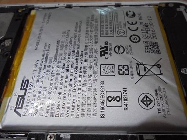 【購得電池】ASUS華碩ZenFone 3→64GB智慧型手機ZE552KL~感覺使用多年的手機蓄電力變差→充飽電後很快就沒電~外出需準備行動電源做充電→要更換新的電池~備全新C11P1511電池→新北市中和區-鄭先生【欲裝進ASUS華碩ZenFone 3手機Z012DA】