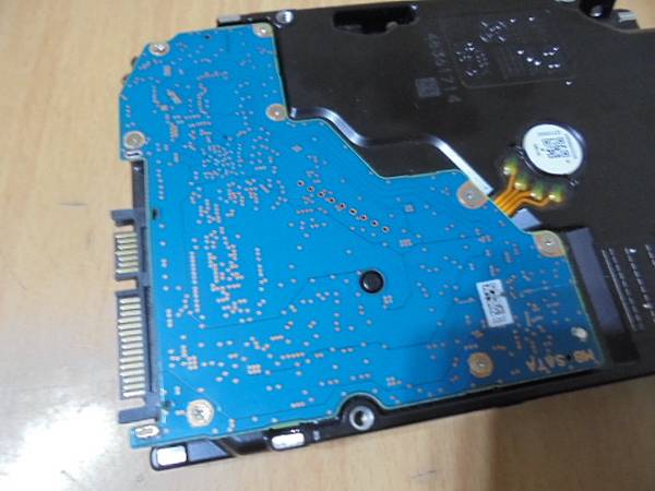 【折斷接口】TOSHIBA東芝14TB→企業級3.5吋硬碟裝在電腦使用~更換硬碟時將SATA電源接口15Pin塑膠片折斷→導致硬碟無法存取使用~已更換SATA接座可再做使用→把TOSHIBA東芝14TB裸碟3.5吋平放~苗栗縣苗栗市-劉先生【電路板插上SATA電源線】