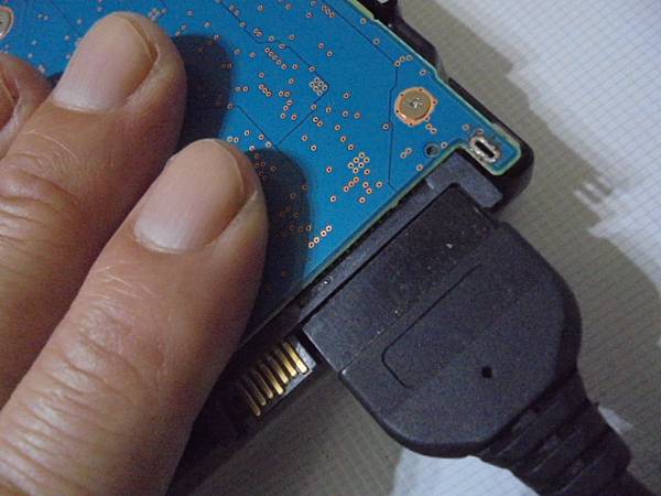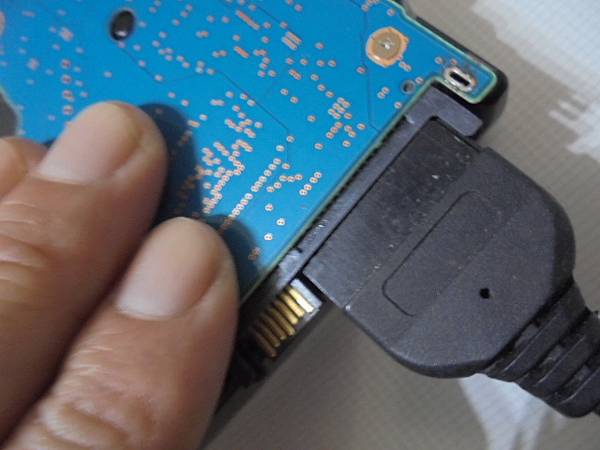 【SATA接座】TOSHIBA東芝14TB~企業級3.5吋硬碟裝在PC使用→更換硬碟時將SATA電源接口15Pin塑膠片折斷~售價一萬元硬碟無法使用→已更換SATA接座檔案都存在~左手3隻指頭觸摸TOSHIBA東芝裸碟電路板→苗栗縣苗栗市-劉先生【碟片已正常轉動】