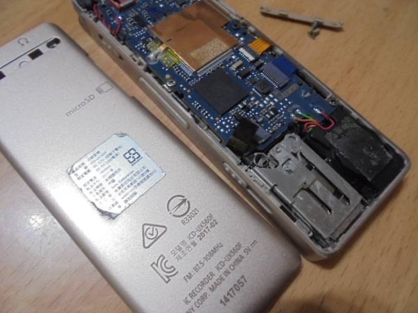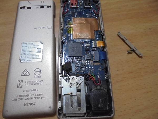【拆殼判定】SONY索尼ICD-UX560F→4GB錄音筆先前正常使用~突然插USB接孔沒充電反應→撥動電源鍵也無法開機~要修好不能開機問題→救出內建記憶體錄音檔案~目視SONY索尼ICD-UX560F錄音筆電路板→新北市新莊區-盧先生【零件無燒毀無缺件】