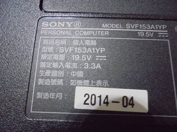 【電郵詢問】SONY索尼VAIO筆記型電腦SVF153A1YP→SVF15329CWP螢幕連接機身的轉軸故障~感覺螢幕與鍵盤快要分離→網路搜尋到我的案例想解決轉軸故障的問題~目視SONY索尼VAIO SVF153A1YP筆記型電腦A殼→桃園市平鎮區-高小姐【狀況仍是很佳】