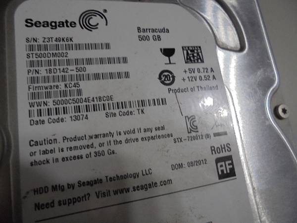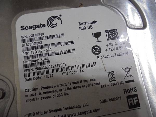 【動態磁碟】Seagate希捷3.5吋500GB~SATA組裝桌上型電腦使用分割三個磁區→先前正常使用及讀取檔案~無故變成動態磁碟後讀不到→要救回硬碟重要的工作檔案~移開A4紙Seagate希捷原廠標籤ST500DM002→新北市三峽區-邱先生【DOM:08/2012】
