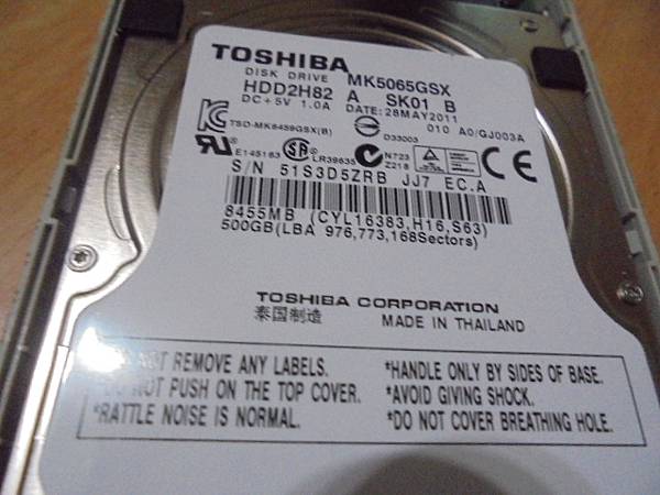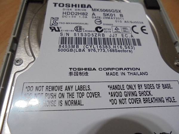 【來電詢問】TOSHIBA東芝CANVIO V6→500GB外接硬碟USB 3.0使用多年~Micro USB 3.0接座鬆動接觸不良→必需調整傳輸線才能順利亮燈~要修好接座讀取硬碟檔案→將TOSHIBA東芝CANVIO行動硬碟翻至背面~臺北市重慶北路-蔡先生【原廠標籤06/11】