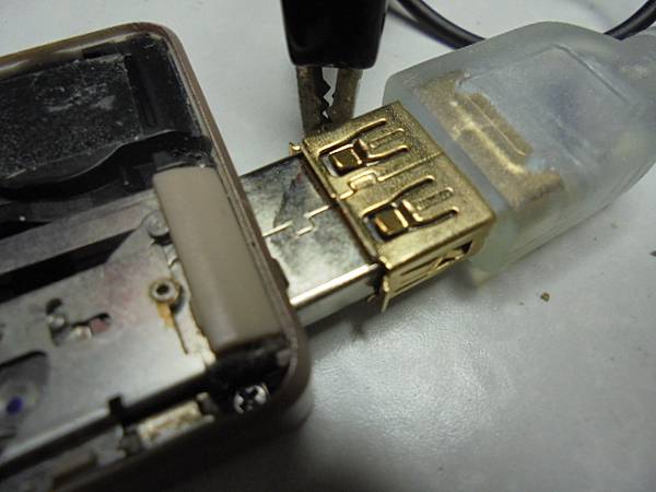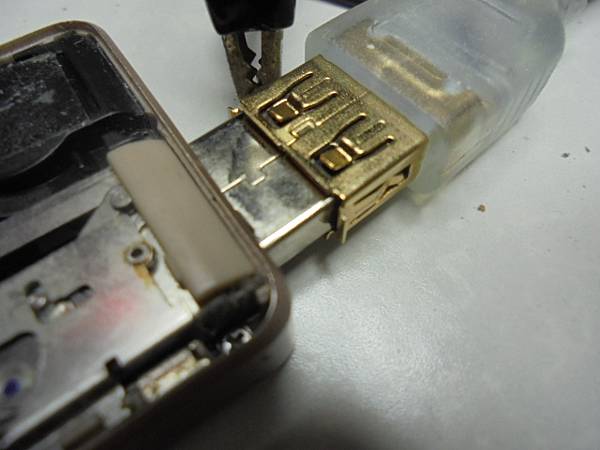 SanDisk晟碟Cruzer Crossfire~2GB隨身碟插桌上型電腦讀取→不慎踢壞USB接頭歪斜而無法使用~已救回隨身碟裏的資料→左手的姆指與食指拉出~花蓮縣吉安鄉-羅小姐【Transcend創見520s】