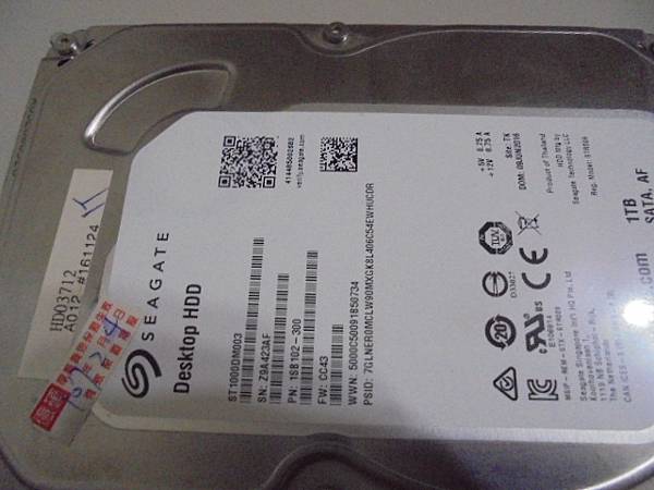【讀取正確】Seagate希捷3.5吋1TB~SATA組裝桌上型電腦使用裸碟分割兩槽→先前電腦正常讀取使用~近日電腦讀不到硬碟D槽→要救回硬碟D槽裏重要的工作檔案~把A4紙與Seagate希捷3.5吋1TB裸碟→新北市三峽區-邱先生【交還客戶帶回自行處理】