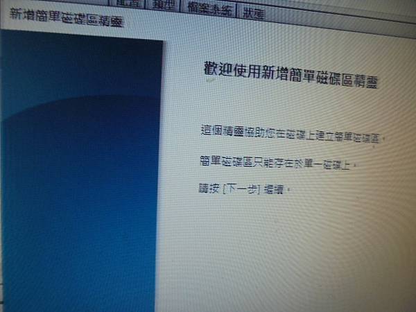 【掃描磁碟】Seagate希捷3.5吋SATA→500GB組裝桌上型電腦使用分割三個磁區~先前正常使用及讀取檔案→無故變成動態磁碟後讀不到~要救回硬碟重要工作檔案→新增簡單磁碟區精靈 歡迎使用新增簡單磁碟區精靈~新北市三峽區-邱先生【下一步】