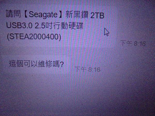 【露天拍賣】Seagate希捷SRD0NF1→2TB外接硬碟USB 3.0使用多年~Micro USB 3.0接座折壞掉落→無法存取硬碟的檔案資料~要修好Micro USB 3.0接座讀取硬碟檔案→於露露通文字訊息詢問~新北市汐止區-胡先生【Seagate新黑鑽2.5吋行動硬碟維修】