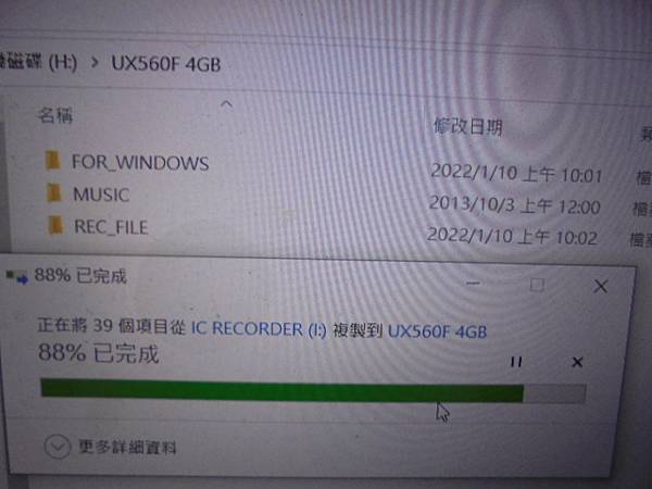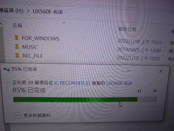 【留機維修】SONY索尼4GB~ICD-UX560F錄音筆先前使用正常→突然撥動電源鍵無法開機~插USB接孔也沒充電反應→已修好不能開機問題~快速救出內建記憶體音檔→85%已完成~新北市新莊區-盧先生【將39個項目從IC RECORDER(I)複製到UX560F 4GB】