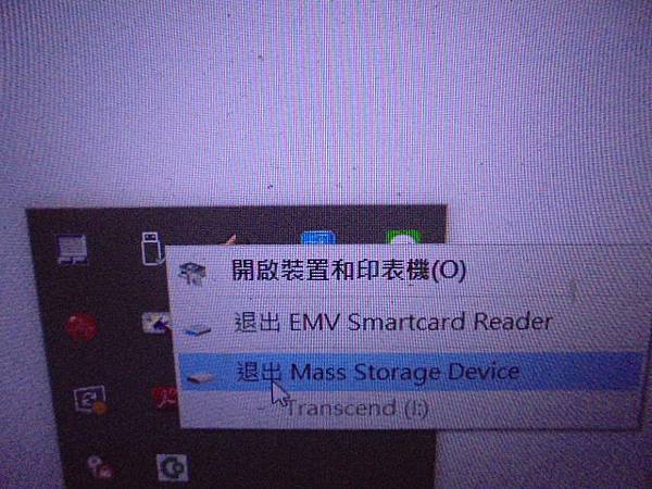 【扯斷線路】Transcend創見700→32GB隨身碟USB 3.0插在電腦讀取使用~不慎踢歪USB接頭後→插上多部電腦都是無法讀取隨身碟~已救回隨身碟重要工作檔案資料→於狀態列點選顯示隱藏的圖示~南投縣魚池鄉-李先生【狀態列已經彈出USB裝置符號】