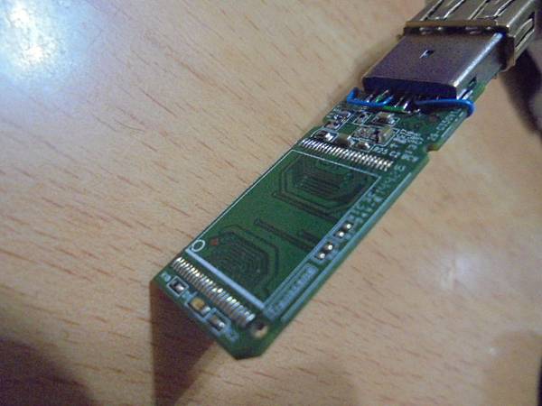 【接補斷線】Transcend創見700~32GB隨身碟USB 3.0插在電腦讀取資料時→撞歪USB 3.0接頭~扯斷電路板多條印刷線路無法讀取→修補斷裂印刷線路檔案資料都在~Transcend創見700隨身碟電路板→南投縣魚池鄉-李先生【由連接NB的USB延長線拉出】