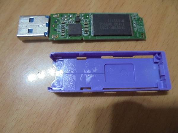 【宅配寄達】Transcend創見32GB~760隨身碟USB 3.0插在電腦使用→出現請插入磁片或光碟片視窗~測試多部電腦都是無法讀取→要救回隨身碟的重要工作檔案資料~把紫色機構殼含Transcend創見760隨身碟電路板→彰化縣鹿港鎮-楊小姐【置進背殼】
