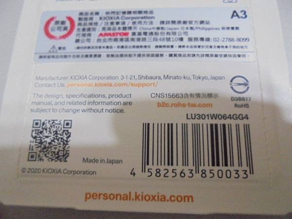 【拔蓋設計】KIOXIA鎧俠U301隨身碟64GB→USB 3.2用來裝回救出的檔案資料~送修無法充電無法開機的SONY索尼ICD-UX560F錄音筆→建議需獨立儲存錄好的錄音檔案~MADE IN JAPAN→新北市新莊區-盧先生【LU301W064GG4支援Windows與Mac作業系統】