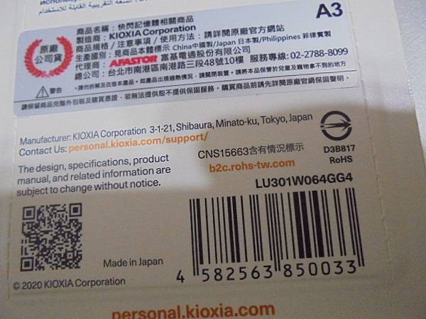 ADATA威剛Micro SDHC 4→32GB記憶卡在LG樂金手機使用~螢幕突然出現需格式化視窗→要救回畢業旅行的相片影片~記憶卡包裝翻回背面→新北市土城區-吳小姐【拉出東芝原廠透明包裝翻至正面】