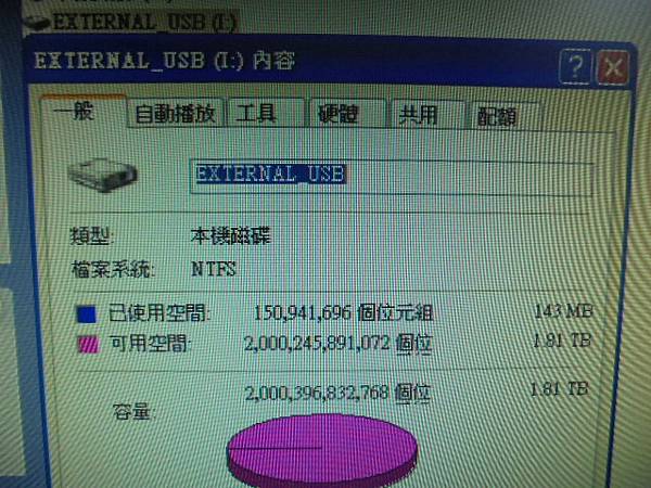 【來電詢問】ADATA威剛CH94→750GB行動硬碟連接電腦存取~作業系統彈出需要格式化磁碟機視窗→存了超級多照片影片檔案~要救回孩子的成長相片影片檔案資料→EXTERNAL_USB(I:)~新北市板橋區-張先生【NTFS已使用空間143MB可用空間1.81TB】