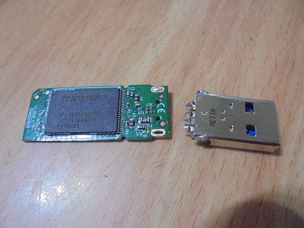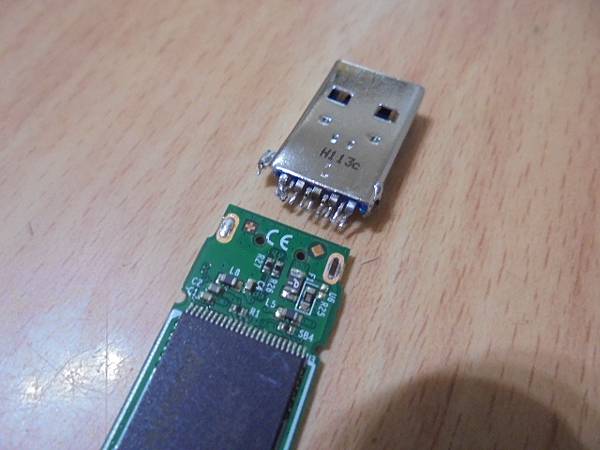 【滿意帶回】Transcend創見530~16GB隨身碟插在桌上型PC電腦使用→撞壞USB接頭導致無法過電讀取~上網搜尋找到我的維修紀錄→要救回隨身碟裏的工作檔案資料~將隨身碟的綠色機構含隨身碟電路板取出翻至背面→臺北市內湖區-李先生【欲取出】