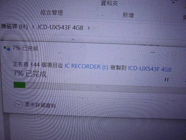 【來電詢問】SONY索尼ICD-UX543F→4GB錄音筆使用多年~錄音筆忽然無法充電無法傳輸檔案→內建記憶體有錄音檔案必需要救出~要改為Micro USB接座充電和傳輸→7%將144個項目從IC RECORDER(I:)~新北市八里區-陳先生【複製到ICD-UX543F 4GB】 【來電詢問】SONY索尼ICD-UX543F→4GB錄音筆使用多年~錄音筆忽然無法充電無法傳輸檔案→內建記憶體有錄音檔案必需要救出~要改為Micro USB接座充電和傳輸→7%將144個項目從IC RECORDER(I:)~新北市八里區-陳先生【複製到ICD-UX543F 4GB】
