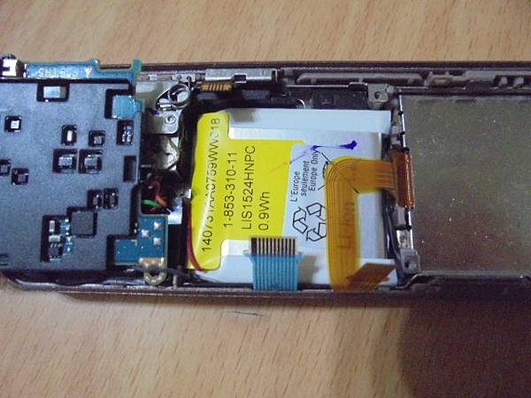 【宅配更換】SONY索尼ICD-UX543F~4GB錄音筆已使用多年→感覺Li-ion鋰電池蓄電力不佳~使用沒多久電源就耗盡→要更換電池~增加電池續航力讓錄音筆使用久些→往外翻開SONY索尼ICD-UX543F錄音筆電路板~南投縣埔里鎮-黃先生【看到原廠電池】