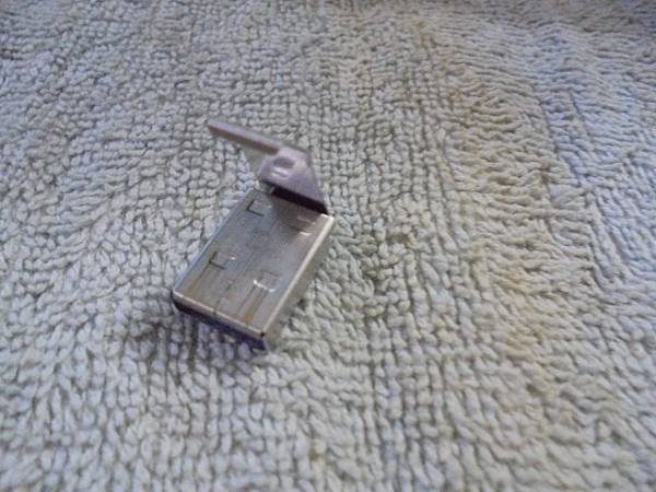 【傳送照片】SanDisk晟碟Ultra Flair~256GB隨身碟插在PC前置USB接座使用→被孩子撞歪USB 3.0接頭後掉落機構裝置~裝不回散落的隨身碟組件→要救回檔案資料~把COB封裝製程隨身碟晶片放進金屬外殼裏→新北市板橋區-林小姐【再處理機構部分】