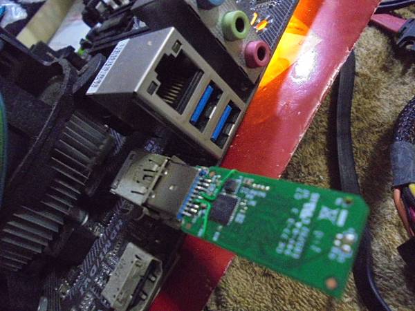 【接補線路】Transcend創見790~32GB隨身碟USB 3.0插在電腦讀取資料時→撞斷USB 3.0接頭~扯斷電路板多條印刷線路無法讀取→要救回隨身碟重要工作檔案資料~由技嘉主機板USB 3.0接座~臺北市民生東路-林先生【拔出Transcend創見790電路板】