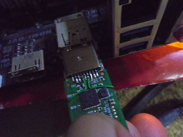 【接補線路】Transcend創見790~32GB隨身碟USB 3.0插在電腦讀取資料時→撞斷USB 3.0接頭~扯斷電路板多條印刷線路無法讀取→要救回隨身碟重要工作檔案資料~由技嘉主機板USB 3.0接座~臺北市民生東路-林先生【拔出Transcend創見790電路板】