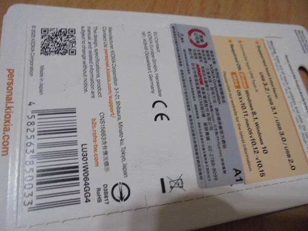 【存進新碟】Transcend創見JetFlash隨身碟790 USB 3.0~32GB插上電腦讀取→看得到所有檔案但自動重複執行閃退~無法正確讀取隨身碟→要救回重要的論文檔案~把KIOXIA鎧俠U301隨身碟64GB放進原廠包裝→新北市永和區-鄭先生【蓋回吊卡包裝】