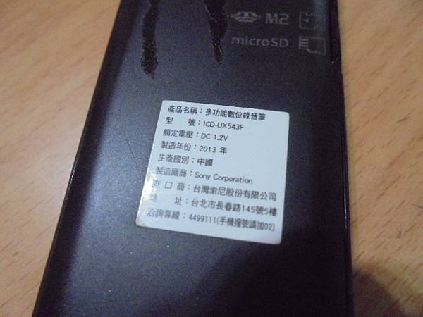 【騎車送測】SONY索尼4GB~ICD-UX543F錄音筆使用多年→錄音筆目前無法充電無法傳輸檔案~內建記憶體有錄音檔案必需救出→要改Micro USB接座傳輸充電與使用~翻至背面SONY索尼ICD-UX543F錄音筆→桃園市觀音區-朱小姐【製造2013年-原廠標籤】 【騎車送測】SONY索尼4GB~ICD-UX543F錄音筆使用多年→錄音筆目前無法充電無法傳輸檔案~內建記憶體有錄音檔案必需救出→要改Micro USB接座傳輸充電與使用~翻至背面SONY索尼ICD-UX543F錄音筆→桃園市觀音區-朱小姐【製造2013年-原廠標籤】
